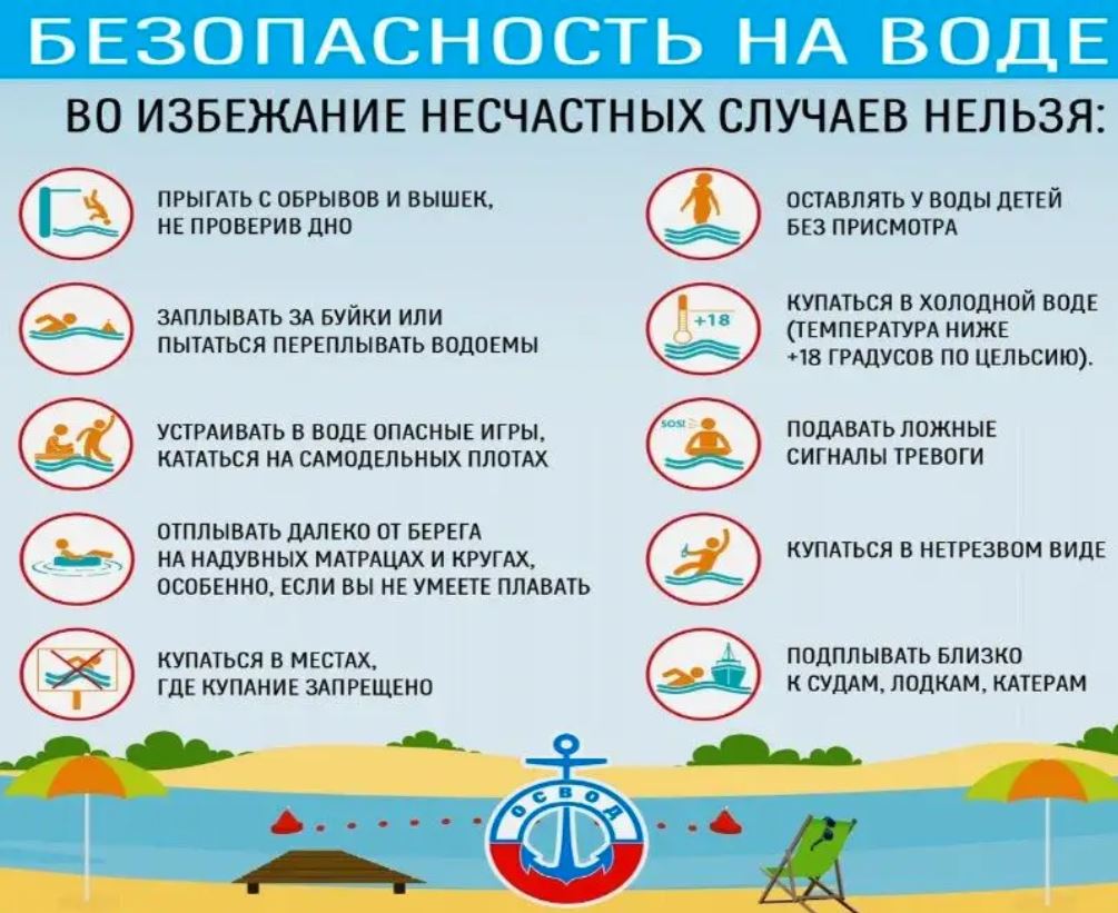 Внимание! Купание в необорудованных местах опасно для жизни и здоровья! Не оставляйте детей у водоёмов без присмотра и не отпускайте их к воде одних! Купание в местах с установленными знаками безопасности на водных объектах «Купаться запрещено!» является нарушением статьи 1.6. Закона Красноярского края от 02.10.2008 № 7-2161 «Об административных правонарушениях» и влечёт предупреждение или наложение административного штрафа на граждан в размере от пятисот до трех тысяч рублей. Номер телефона экстренных служб – 112.